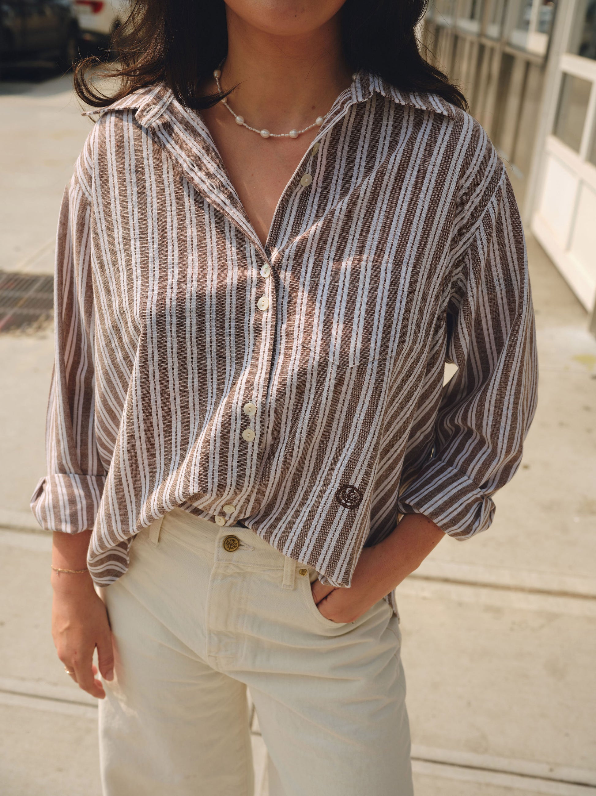 The Chacha Oversized Button Down Shirt - Chocolate Stripe